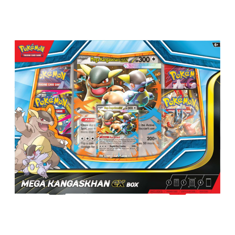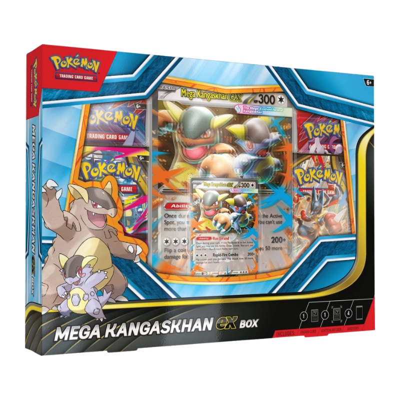 The Pokémon TCG: Mega Kangaskhan ex Box includes: